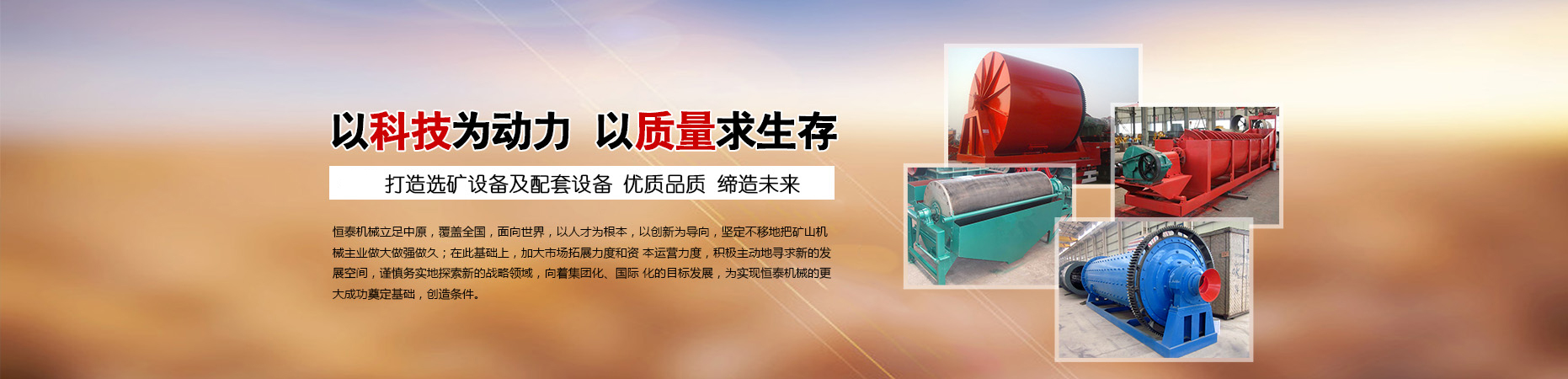 鞏義市恒泰機(jī)械廠順應(yīng)全球環(huán)境保護(hù)的趨勢(shì),緊密跟隨世界科技發(fā)展步伐,先后研制多種節(jié)能環(huán)保型機(jī)械設(shè)備,形成規(guī)模化批量生產(chǎn)。尤以烘干機(jī)設(shè)備、破碎機(jī)設(shè)備、撕碎機(jī)設(shè)備、給料篩分設(shè)備、球磨機(jī)選礦設(shè)備的生產(chǎn)設(shè)計(jì),具有豐厚的技術(shù)經(jīng)驗(yàn),產(chǎn)品機(jī)械化、自動(dòng)化程度高,質(zhì)量穩(wěn)定、安全。